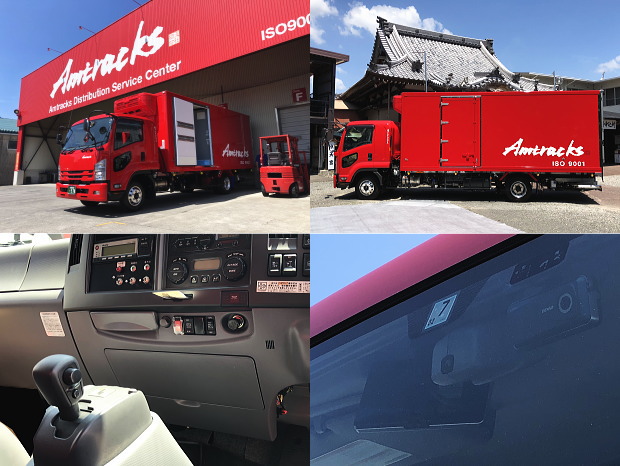 業務の拡大に伴い、関係先各社のご協力のもと、5月9日に4トン車(ISUZU車)を2台増車いたしました。5月10日より運行を開始しております。前回に引き続き、今回導入した新しい車両もドライバーの負担を軽減するAT車で、衝突の危機を回避するためのセンサーを搭載したセーフティートラックです。