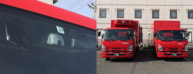 関係先各社のご協力のもと、7月から9月にかけての3トン車を1台、4トン車を2台、入れ替えました。前回に引き続き、今回導入した新しい車両もドライバーの負担を軽減するAT車で、衝突の危機を回避するためのセンサーを搭載したセーフティートラックです。