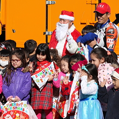 2011年に同校の皆さんがペイントした、弊社20周年記念車にクリスマスプレゼントを満載して訪問しました。クリスマスに同校を訪問するのは、これで11年目となりました。