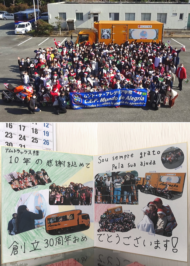 浜松市西区の外国人学校「ムンド・デ・アレグリア」の皆さんに、弊社20周年記念車へのペイントのお礼として、クリスマスプレゼントを贈りました。