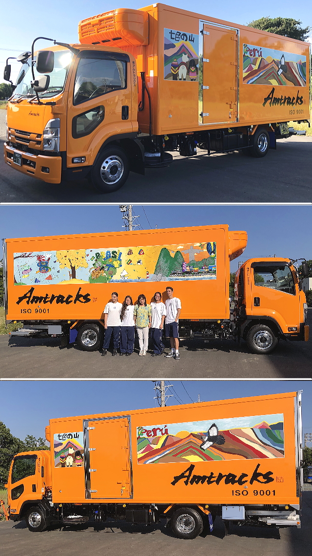 今年は日秘友好150周年にあたり、車両の助手席側にはペルーの美しい山並みが、また運転席側にはブラジルのリオデジャネイロの風景と、日本のイメージが描かれています。