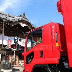 業務拡大のため関係先各社のご協力のもと、新たに3トン車(ISUZU)を導入いたしました。導入に先立ち、藤枝市の成田山で納車式を行いました。ドライバーの負担を軽減するAT車で、弊社は今後もAT車を積極的に導入して参ります。