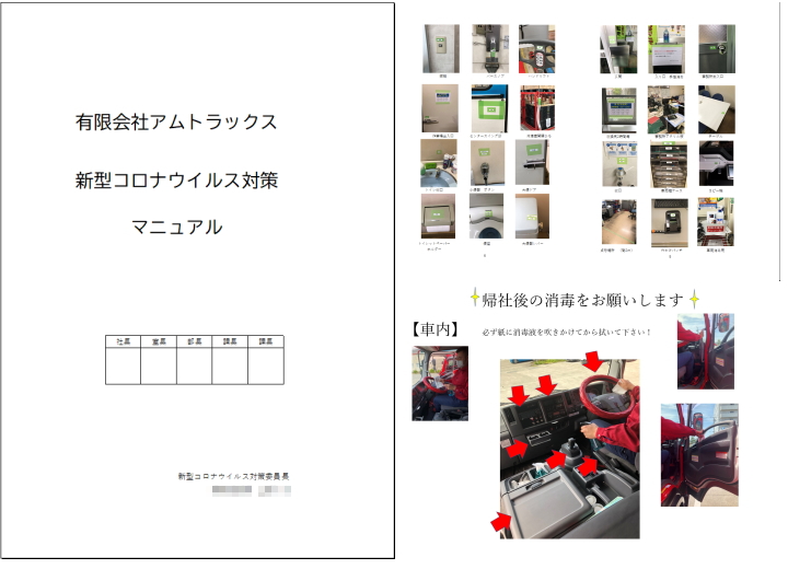 食品を運ぶ物流企業として、お客さまと社員の健康と安全のため、新型コロナウィルス感染症の感染予防策として、社内マニュアルを作成しました。